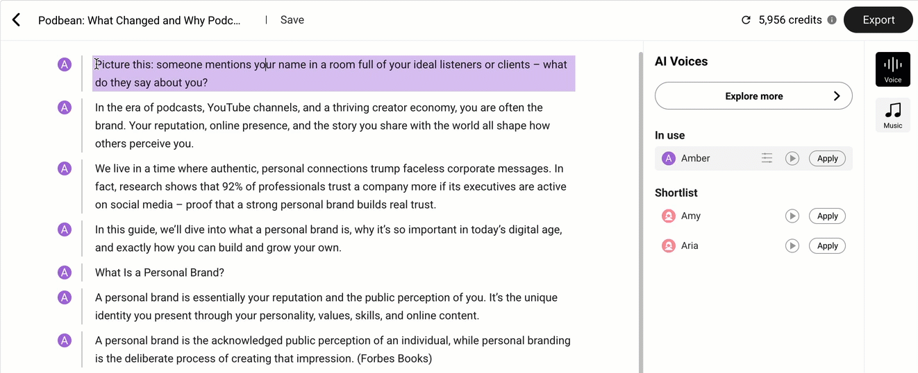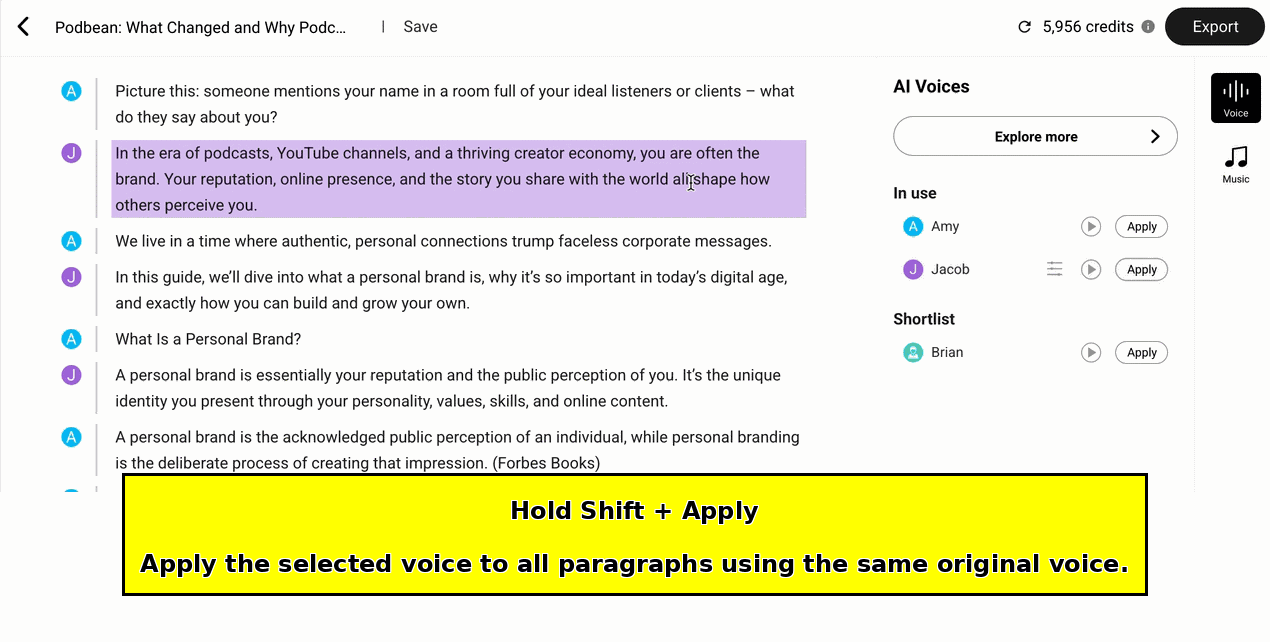 Click Apply to apply the selected voice to the currently selected paragraph(s).